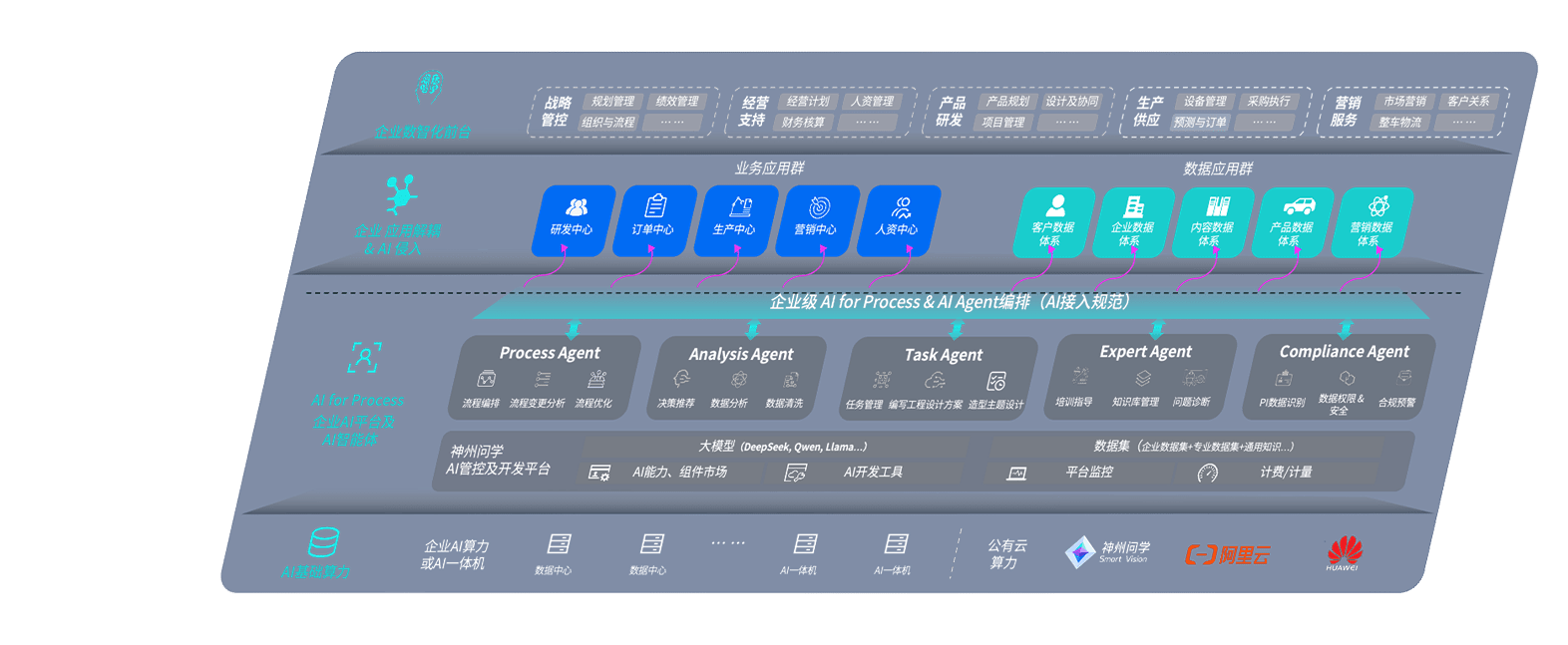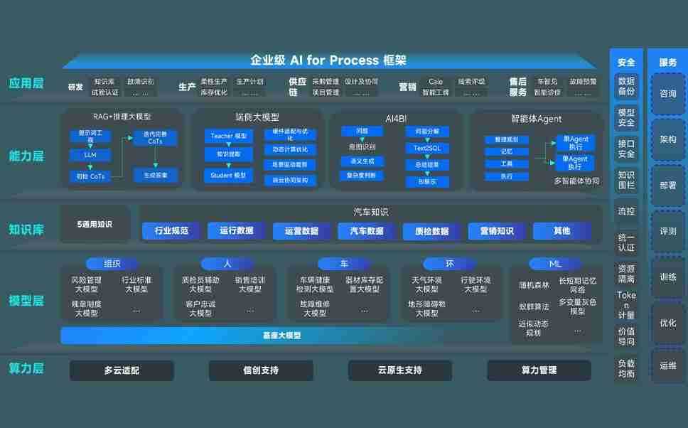 端到端的一站式AI工作空间深度融合了从企业战略规划到日常经营的全流程业务板块,,,定向解决车企内部领域多、、部门多、、、链条长、、、、场景碎片化等难题,,,支持车企快速构建以AI为核心的生产力写作体系,,,实现任务执行与AI能力的无缝集成与交互
